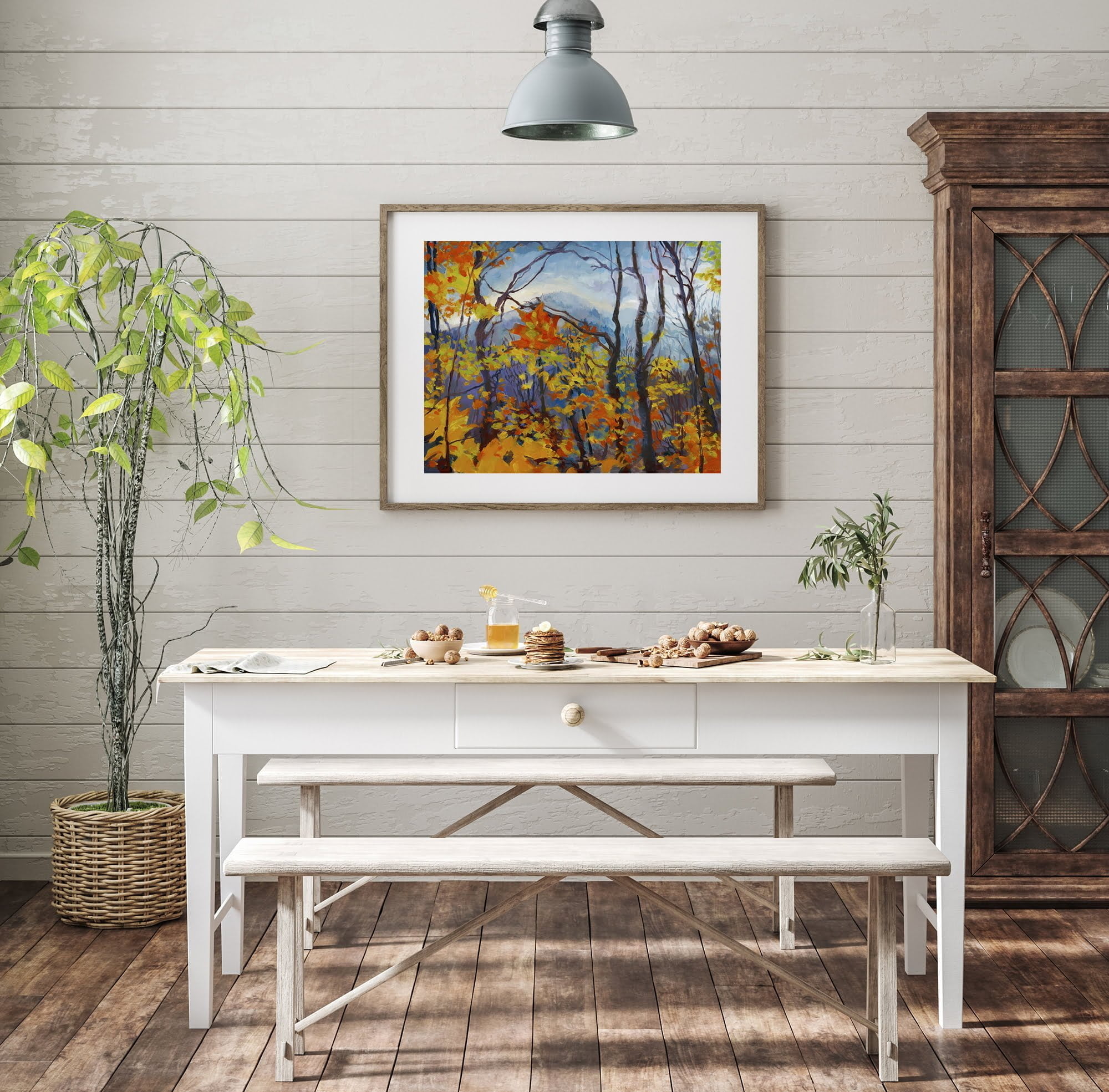 Landscape Art – Extra Large Wall Art Prints of Misty Mountain Autumn, Quebec, Canada in Oil